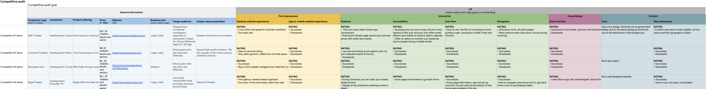 To develop a competitive online presence, I conducted a comprehensive review of our competitors' websites and apps, analyzing their checkout flows, design, user experience, and unique features. By identifying gaps and opportunities in the market, I was able to refine our strategy and address key areas where we could differentiate ourselves from the competition. This competitive analysis helped me make informed decisions about the design and development of Cine-Movie's online checkout flow, ensuring that we deliver a seamless user experience that stands out in a crowded marketplace.