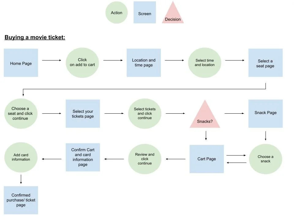 User flows are an essential part of designing a website that provides a seamless user experience. At Cine Movie, user flows were used to outline the sequence of steps required for users to complete tasks on the website, such as purchasing tickets or selecting seats. By mapping out each step of the process, potential obstacles in the user journey were identified and addressed, ensuring that users can complete their tasks with ease. This approach also helped to determine the most effective and efficient way to design each screen, resulting in an intuitive and user-friendly website.
